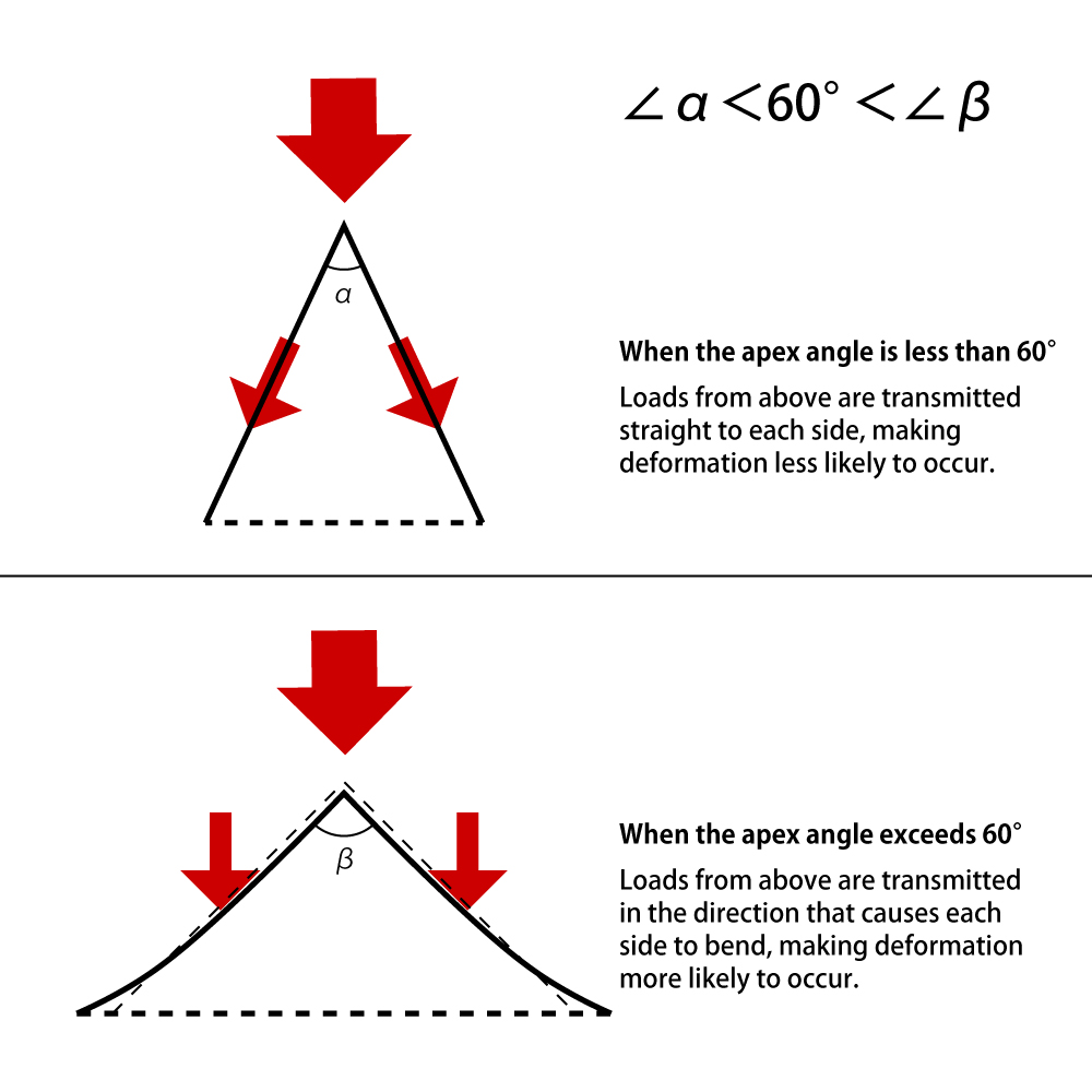 Also, when looking at the tripod from the side, take a look at the triangle formed by the two leg pipes and the ground. On flat ground, it forms an isosceles triangle. However, if the apex angle is less than 60 degrees, the weight of the equipment will be transferred directly to the pipes. If it is greater than 60 degrees, the load will be transferred in a direction that causes the pipes to bend laterally. Being able to spread your legs at an angle of more than 60 degrees does not necessarily mean you can take stable photos.