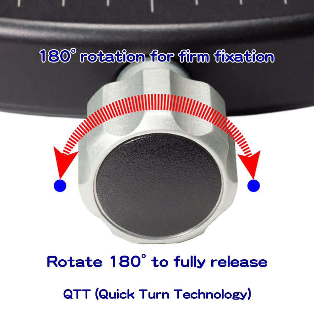 In addition, the mounting screw holes are pre-drilled with UNC1/4-20 threads (usually UNC3/8-16), eliminating the need for additional parts such as adapters. TSUBAME's unique large locking wheels ensure extremely secure mounting and rotation without the need for tools.